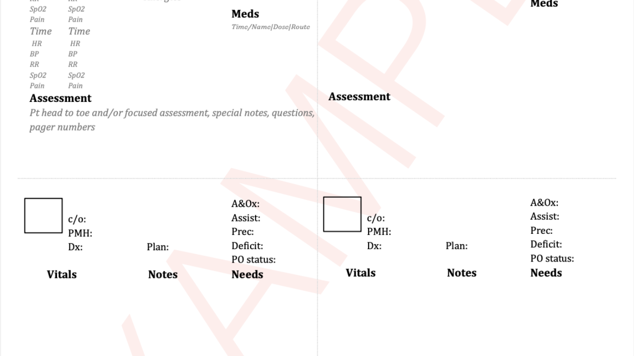 - Structured note-taking layout that organizes important info for several patients so you can stop worrying about memorizing every detail and focus on what actually matters
